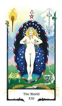 世界塔羅牌的統治星球是土星,她的元素是土。