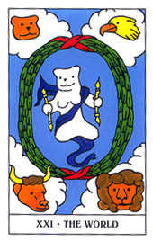 世界塔羅牌的統治星球是土星,她的元素是土。