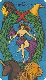 世界塔羅牌的統治星球是土星,她的元素是土。