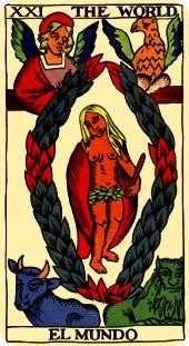 世界塔羅牌的統治星球是土星,她的元素是土。