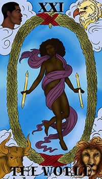 世界塔羅牌的統治星球是土星,她的元素是土。