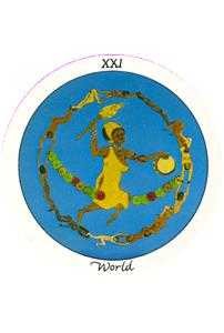世界塔羅牌的統治星球是土星,她的元素是土。