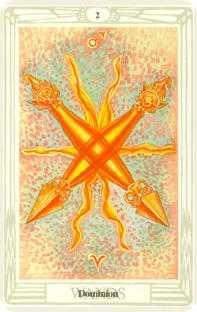 權杖二意味著你的大多數想法都轉化為行動,引領你走上成功的道路。您現在可以探索世界並從不同的經歷中學習。您的自信和自我知識使您有勇氣拓寬您的精神領域並實現您的長期目標。