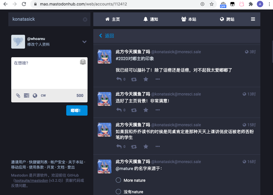我按follow了,如果你suspend掉貓站應該看不到我的關注,但是我這邊還是能在站內直接看到你的posts