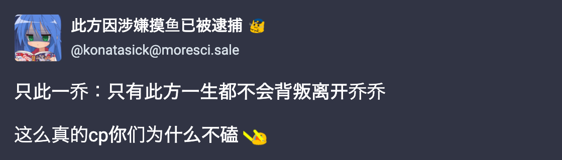 @konatasick 原來是這樣!我還以為右邊那個看起來像要親姐姐大腿的色鬼臉才是喬喬呢 :blobcatnotlikethis: